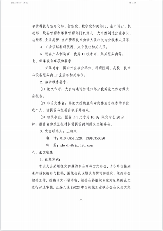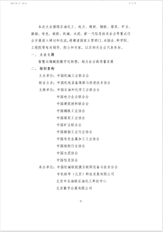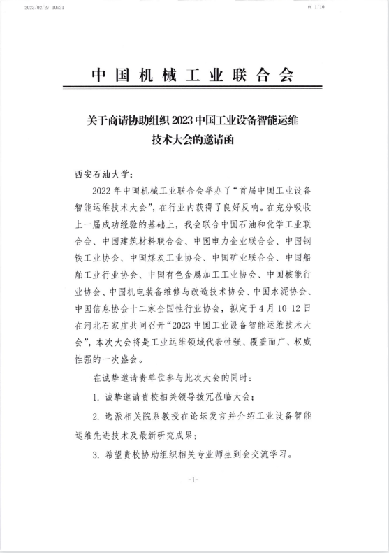 中国机械工业联合会关于召开2023中国工业设备智能运维技术大会的通知